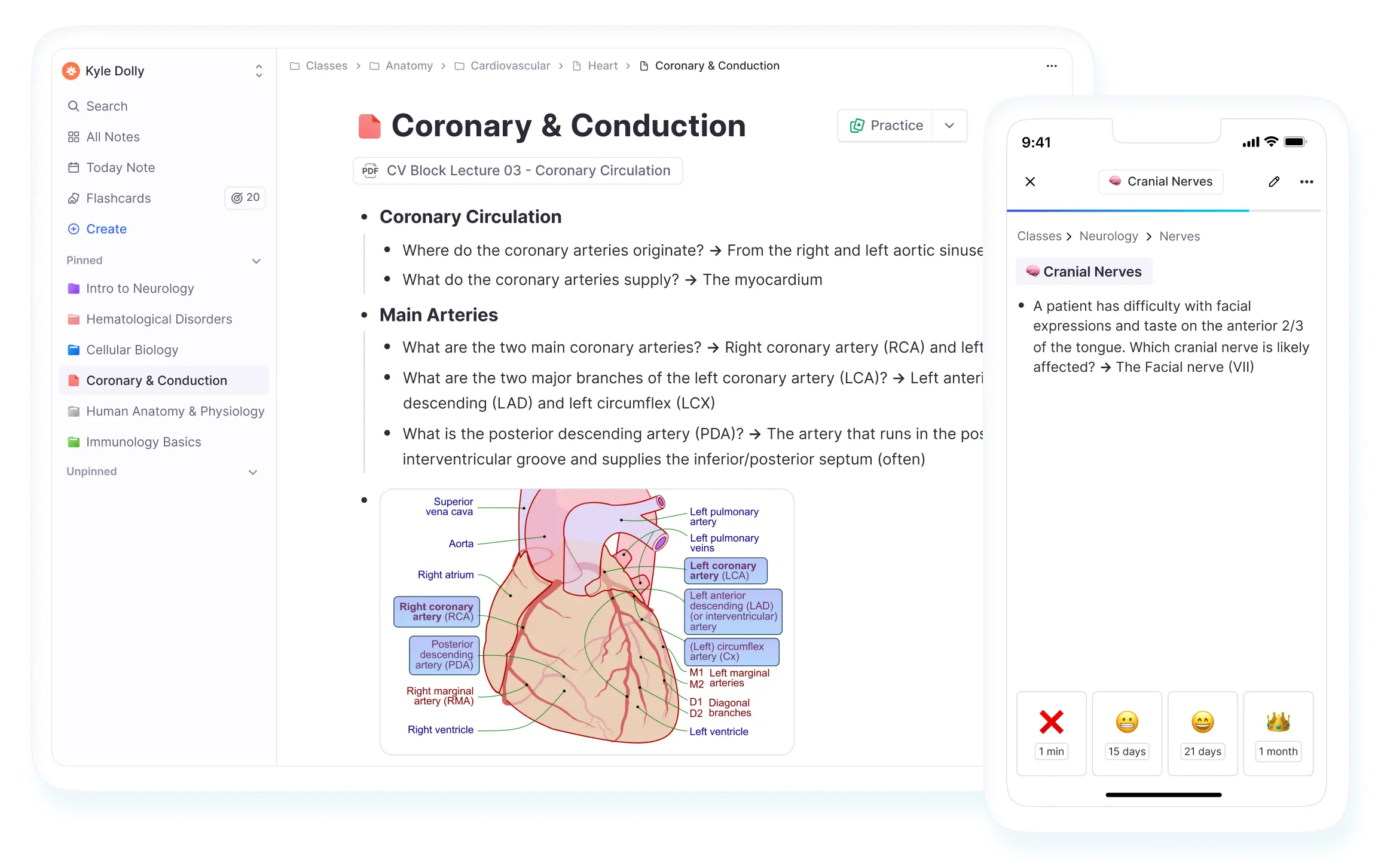 You can also create flashcards directly inside your notes as you write, making card-writing twice as fast and helping you learn the material in the process. Because your flashcards live alongside your notes, you build understanding while you study.