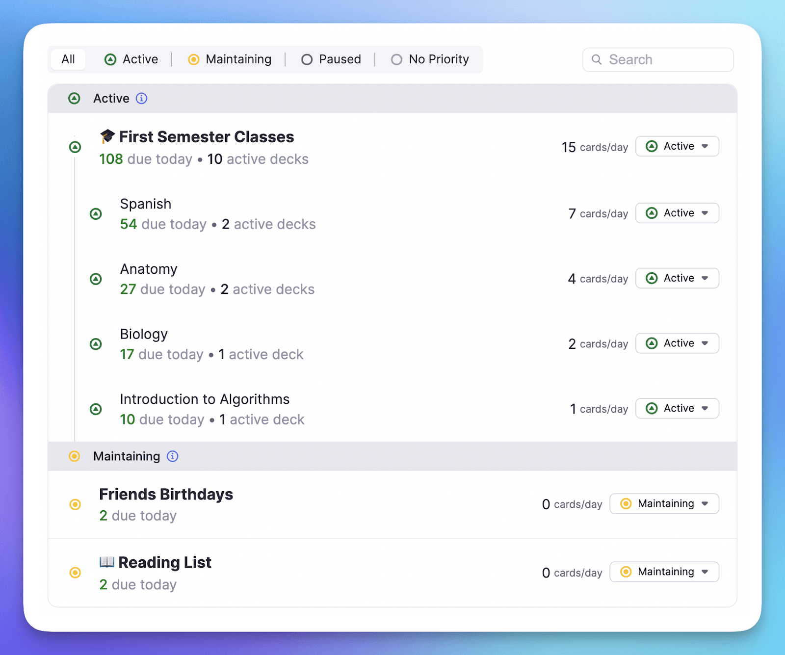 - Daily learning feature: You tell RemNote how many cards you’re willing to practice every day, and it prompts you to reach that goal.