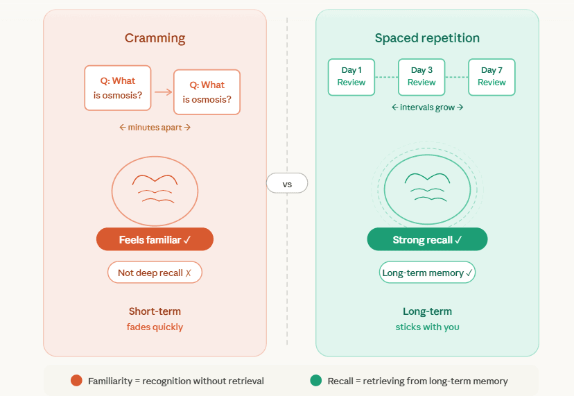 We ideally want to space out reviews so that they can form the neural connections of long-term memory.