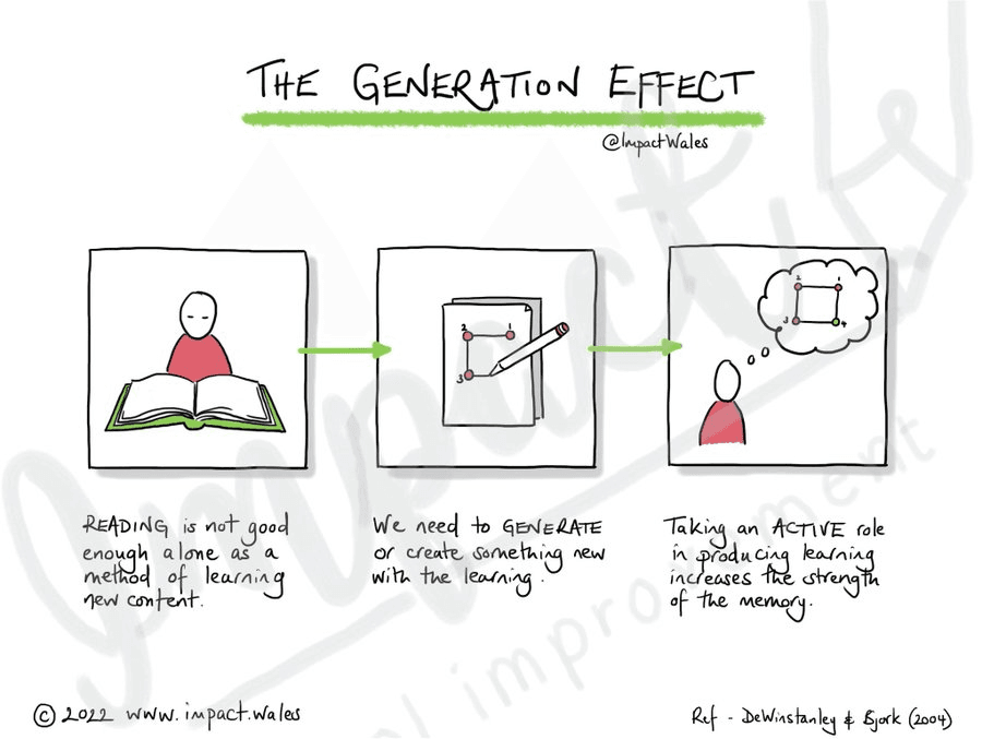 Science says that you remember information best when you generate it yourself rather than simply reading it passively. This is known as the generation effect.