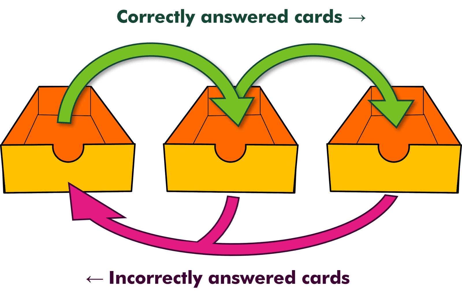 Based on the principle of spaced repetition, the Leitner system uses flashcards that get sorted into different categories based on their level of difficulty.